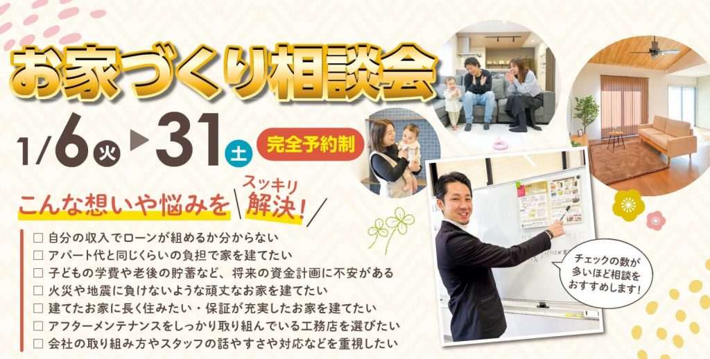 お休み中のお問合せやWEB来場予約は、1/6以降順次ご返信させていただきます。