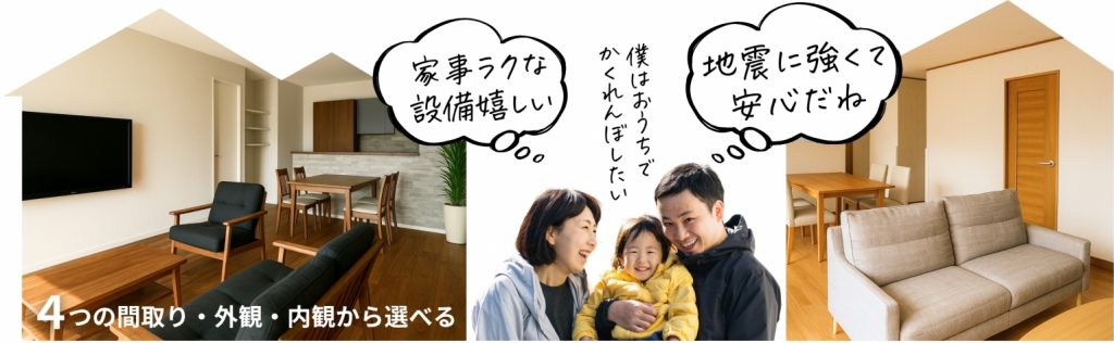 絆ハウスのモニターハウスは、あなたの好みに合わせて選べる4つのプランをご用意。
