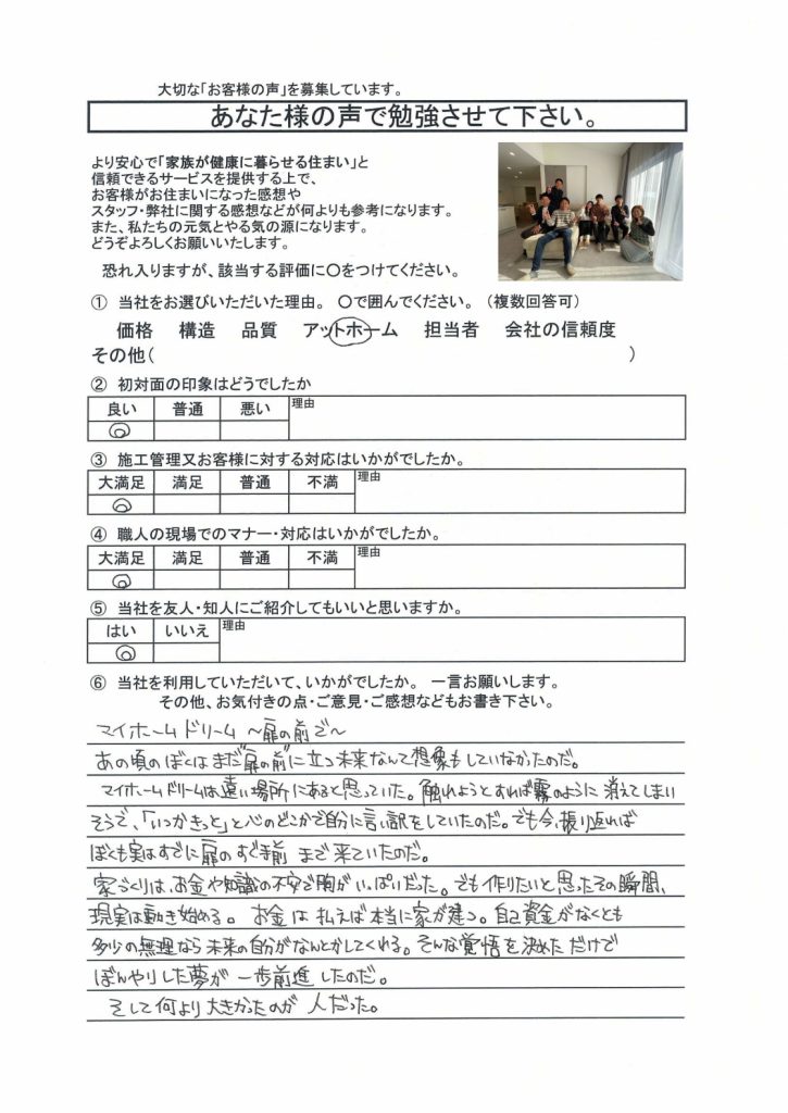 家づくりは信頼関係が大切です。弊社は無理な営業は行いません。