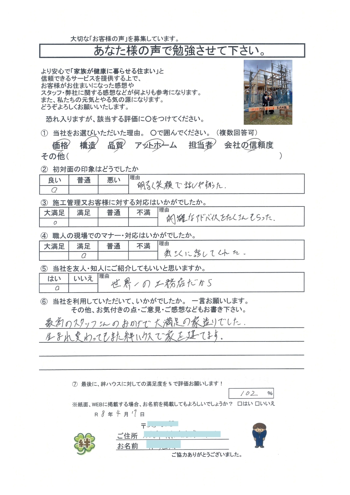 家づくりは信頼関係が大切です。