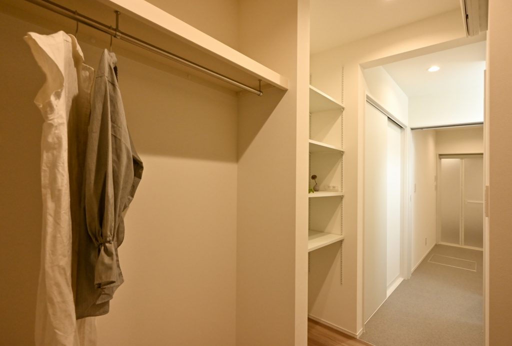 ▽オープンタイプの扉無しクローゼットは空間を無駄なく広く使えて人気