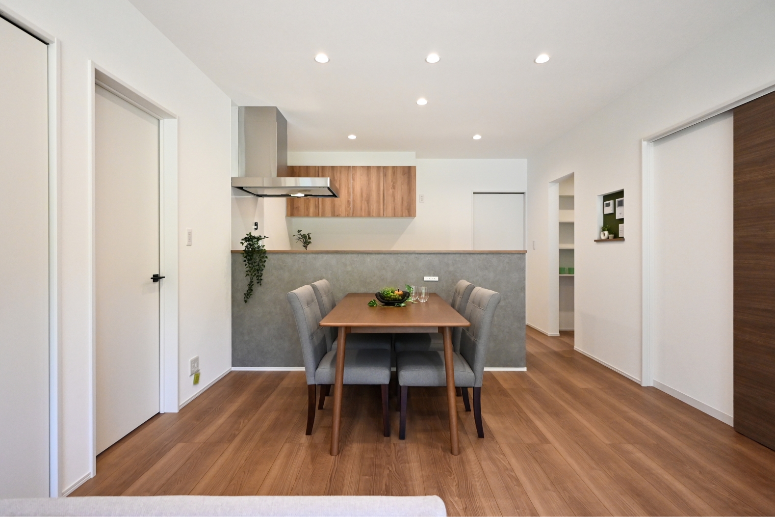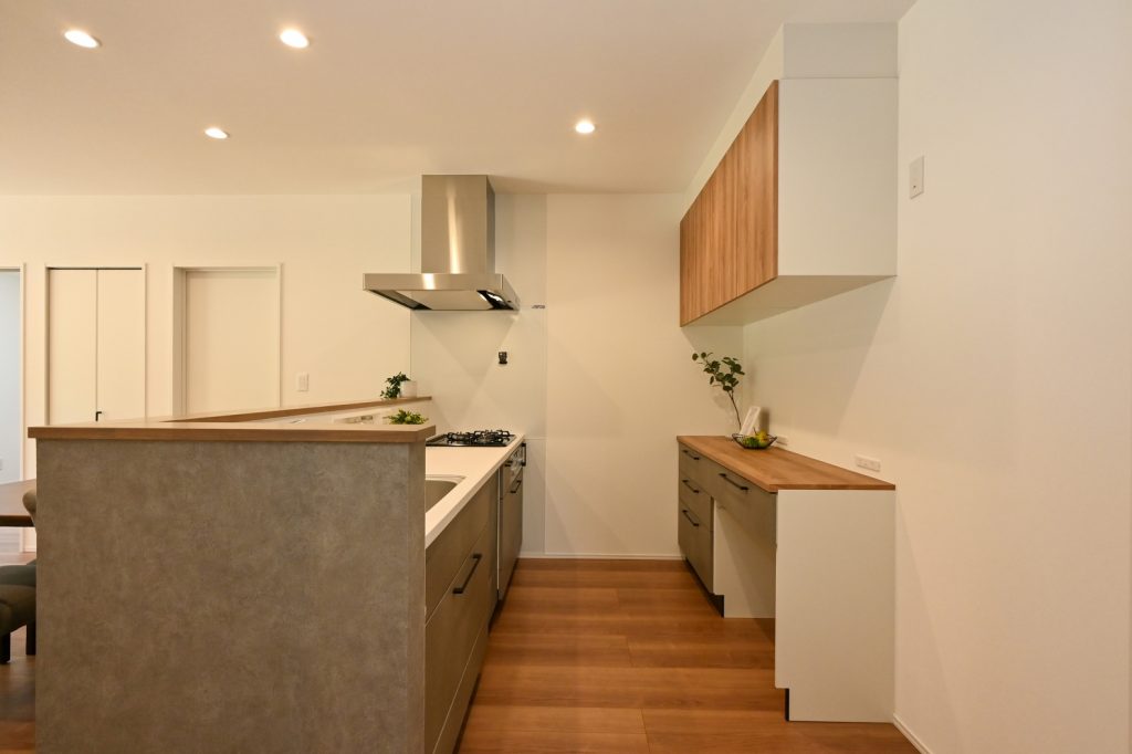 ▽グレー×木目を効果的に活かしたオープンキッチン♪
