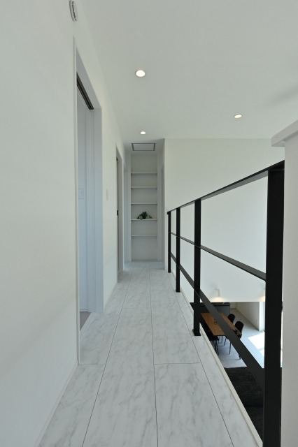 ▽廊下の突き当たりには家族で使える本棚スペースを作りました