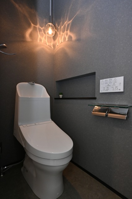 ▽グレーカラーでまとめた落ち着いた雰囲気のトイレ
