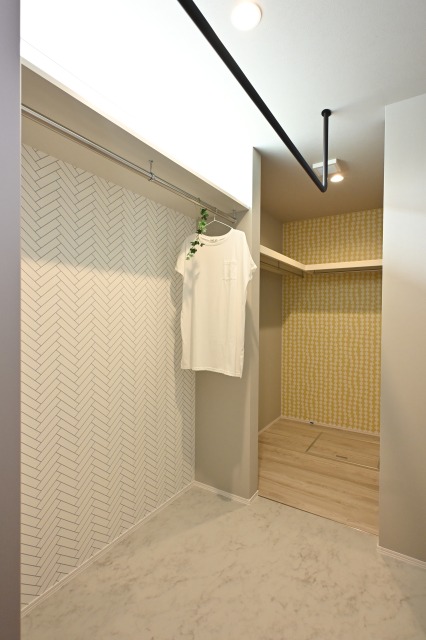 ▽家族共用のウォークインクローゼットをランドリー横に設け、片付けが自然と習慣になる間取り