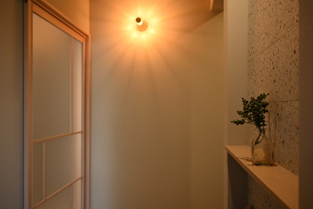 ▽やさしい光が迎える、落ち着いた佇まいのジャパンディ玄関