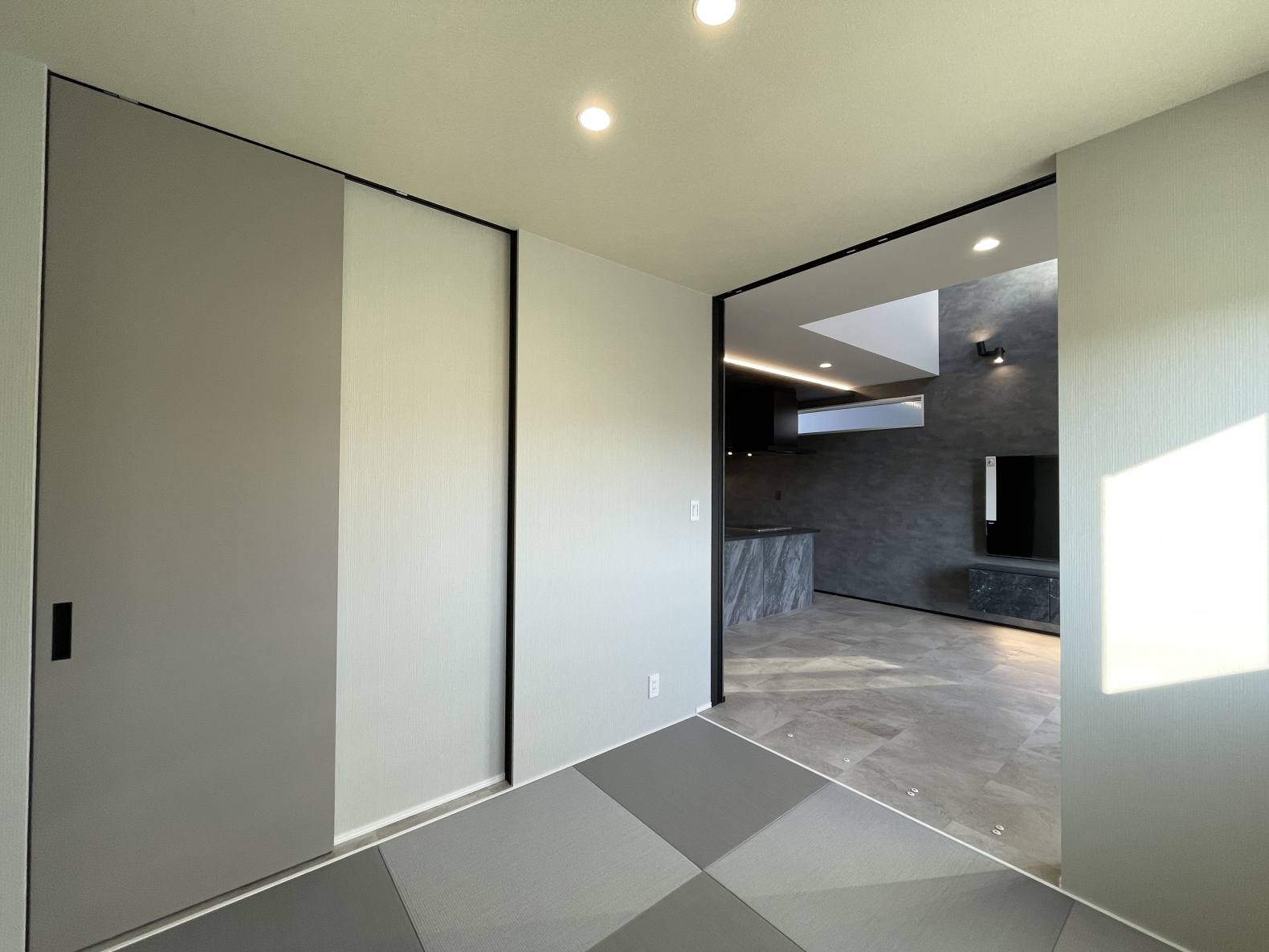 ▽リビングとつながる、グレー畳が映える洋風テイストの4.5帖和室