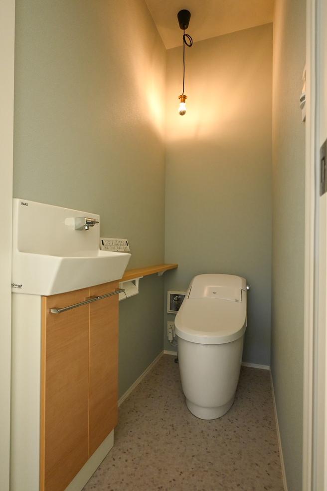▽やわらかな灯りとくすみカラーが心地よい、落ち着きあるトイレ空間✨