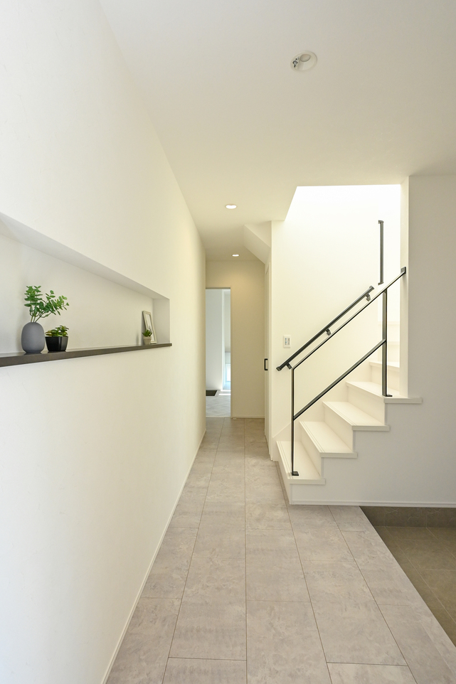 ▽横長ニッチが出迎えてくれる明るくて広い玄関